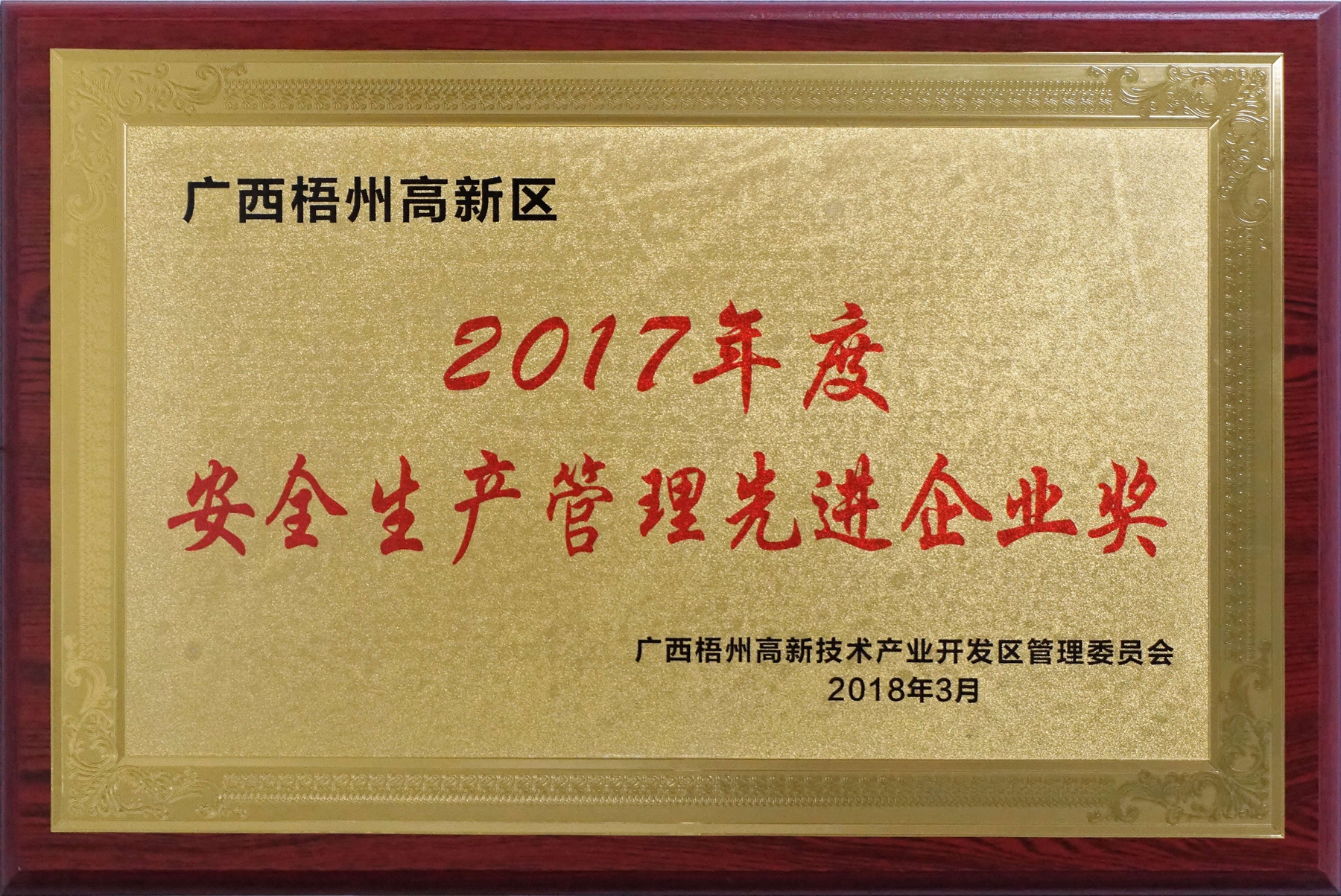 榮獲2017年安全生產(chǎn)管理先進(jìn)企業(yè)獎(jiǎng)