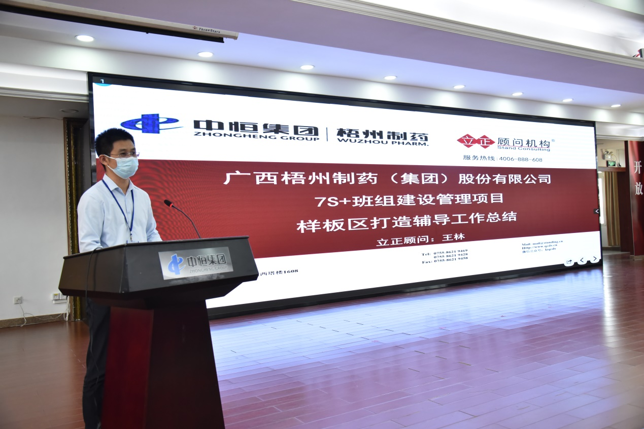王林顧問為本次7S樣板區(qū)打造輔導工作總結(jié),肯定了10個樣板區(qū)取得的成績,提出了樣板區(qū)細節(jié)提升建議,并對后續(xù)7S管理推廣工作安排進行簡要說明。
