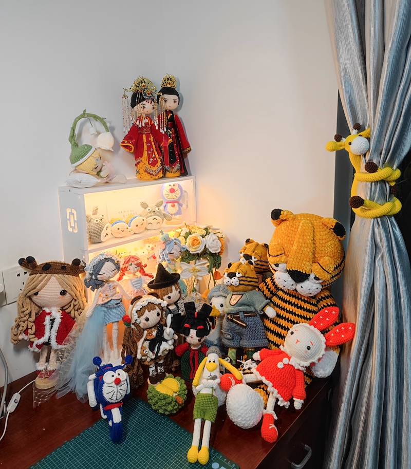 待在家里用毛線鉤織各種物件和玩偶