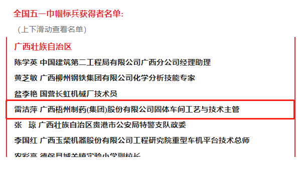近日,中華全國(guó)總工會(huì)在北京隆重召開2023年全國(guó)五一巾幗獎(jiǎng)表彰大會(huì),大會(huì)表彰了450個(gè)全國(guó)五一巾幗標(biāo)兵崗、450名全國(guó)五一巾幗標(biāo)兵。梧州制藥固體車間工藝與技術(shù)主管、中華跌打丸制作技藝“非遺”傳承人雷潔萍榮獲“全國(guó)五一巾幗標(biāo)兵”稱號(hào)。其所在的固體車間于2021年度曾榮獲 “全國(guó)巾幗文明崗”榮譽(yù)稱號(hào),她們巾幗不讓須眉,立足崗位履職盡責(zé),把智慧和汗水奉獻(xiàn)在崗位,為企業(yè)快速發(fā)展作出了積極貢獻(xiàn),充分發(fā)揮了“半邊天”不可替代的作用。