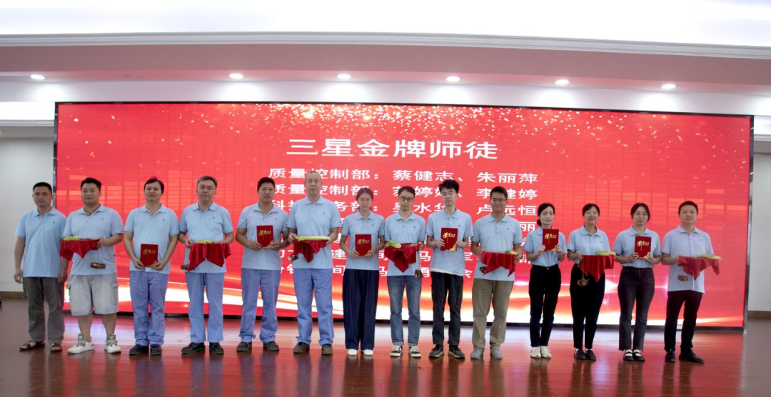 經(jīng)過近一年的評比角逐,分別評出三星、四星、五星等級的金牌師徒,獲評的星級師父們在會上光榮接受了公司領(lǐng)導(dǎo)班子為他們頒發(fā)的榮譽證書。一本本鮮紅的證書不僅僅是榮譽,更是梧州制藥“造中華好藥”工匠精神代代傳承的最好見證。