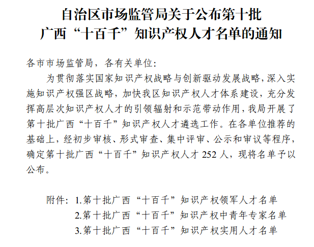 第十批廣西“十百千”知識(shí)產(chǎn)權(quán)人才榮譽(yù)