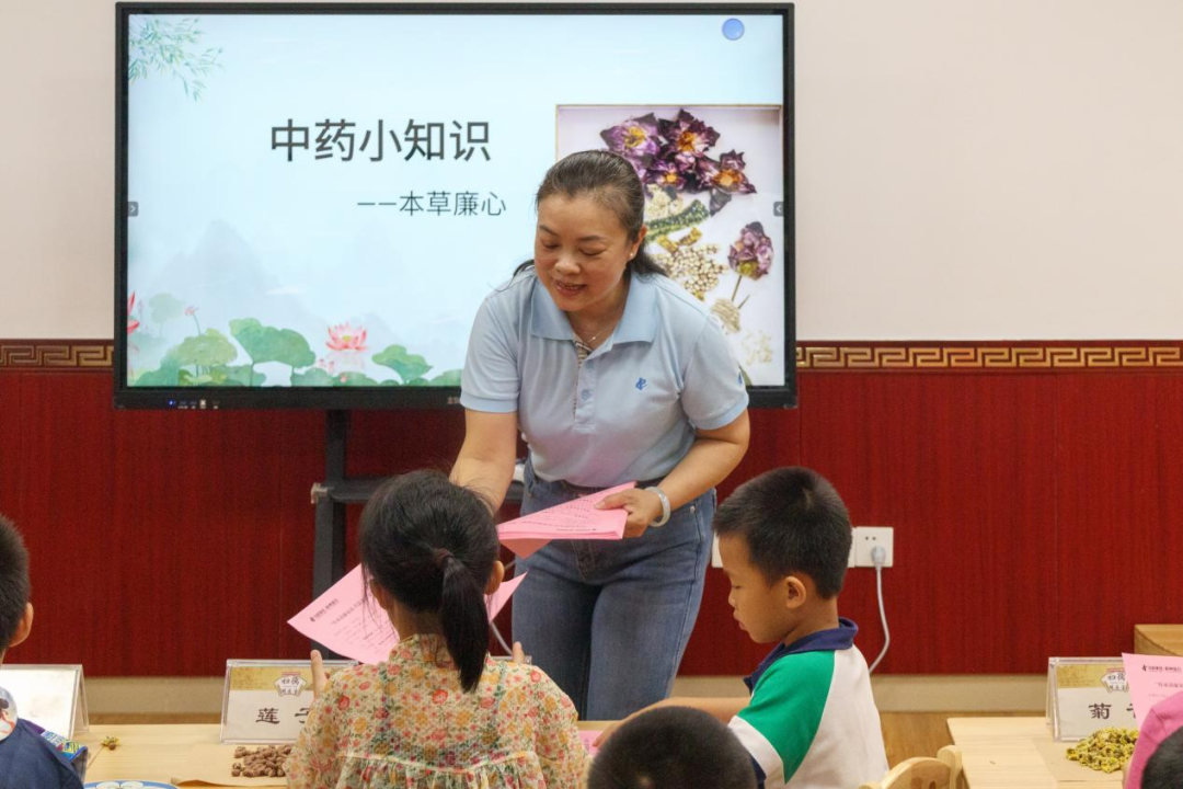 活動(dòng)以朗誦葉劍英家書(shū)開(kāi)篇,家長(zhǎng)與孩子深情共讀,勾勒出一幅風(fēng)清氣正的和美畫(huà)卷。在“中藥小知識(shí)——本草廉心”小課堂里,工作人員展示淡竹葉、蓮子、荷葉等清心類藥材標(biāo)本,孩子們?cè)诩议L(zhǎng)陪伴下觀察形態(tài)、嗅聞氣味、參與趣味問(wèn)答,感受中醫(yī)藥文化的獨(dú)特魅力,讓古老中醫(yī)藥文化在孩子們心中“鮮活”起來(lái)。