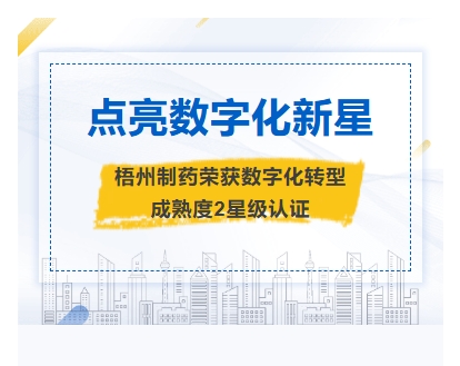 點亮數(shù)字化新星梧州制藥榮獲數(shù)字化轉(zhuǎn)型成熟度2星級認證摘要近日,數(shù)字化轉(zhuǎn)型貫標工作委員會公布第十九批數(shù)字化轉(zhuǎn)型貫標星級評估結(jié)果,廣西梧州制藥(集團)股份有限公司憑借扎實的轉(zhuǎn)型實踐與顯著成效,成功獲評數(shù)字